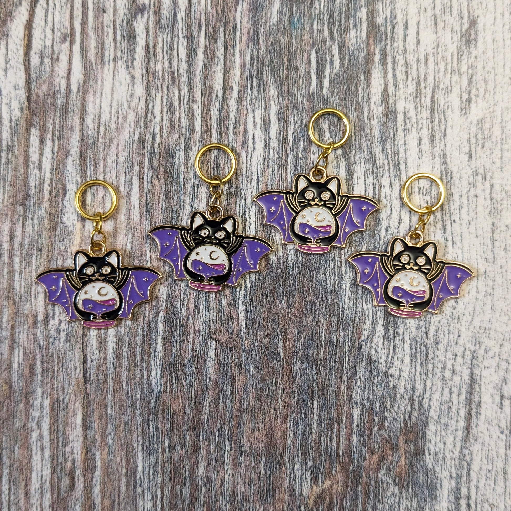 There are four stitchmarkers in a pack, and they come packaged on a catty card. If you'd like a little tin to store them in you can add it as an extra.