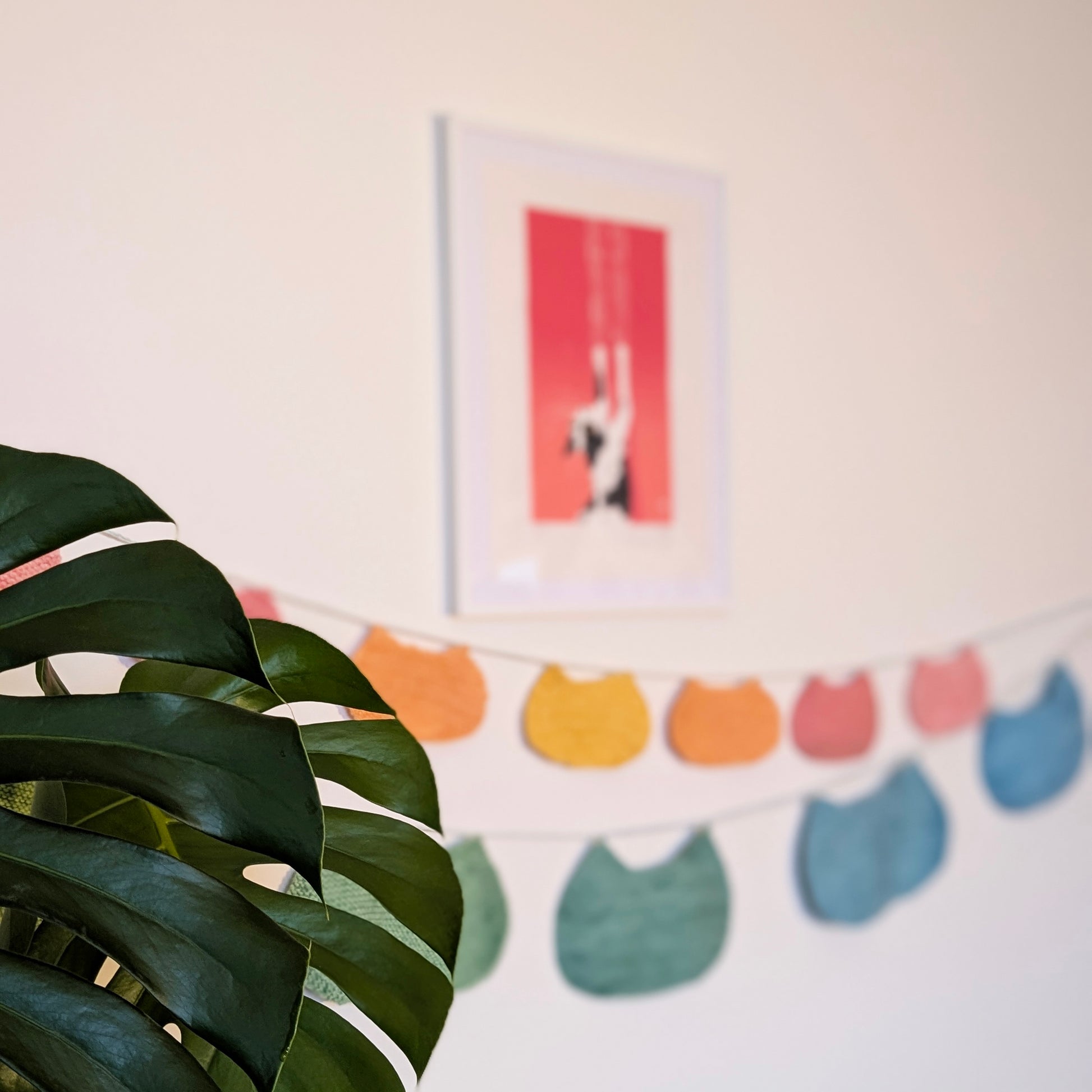 Festoon your space with a cat parade! These little knitted cat faces make the sweetest bunting.