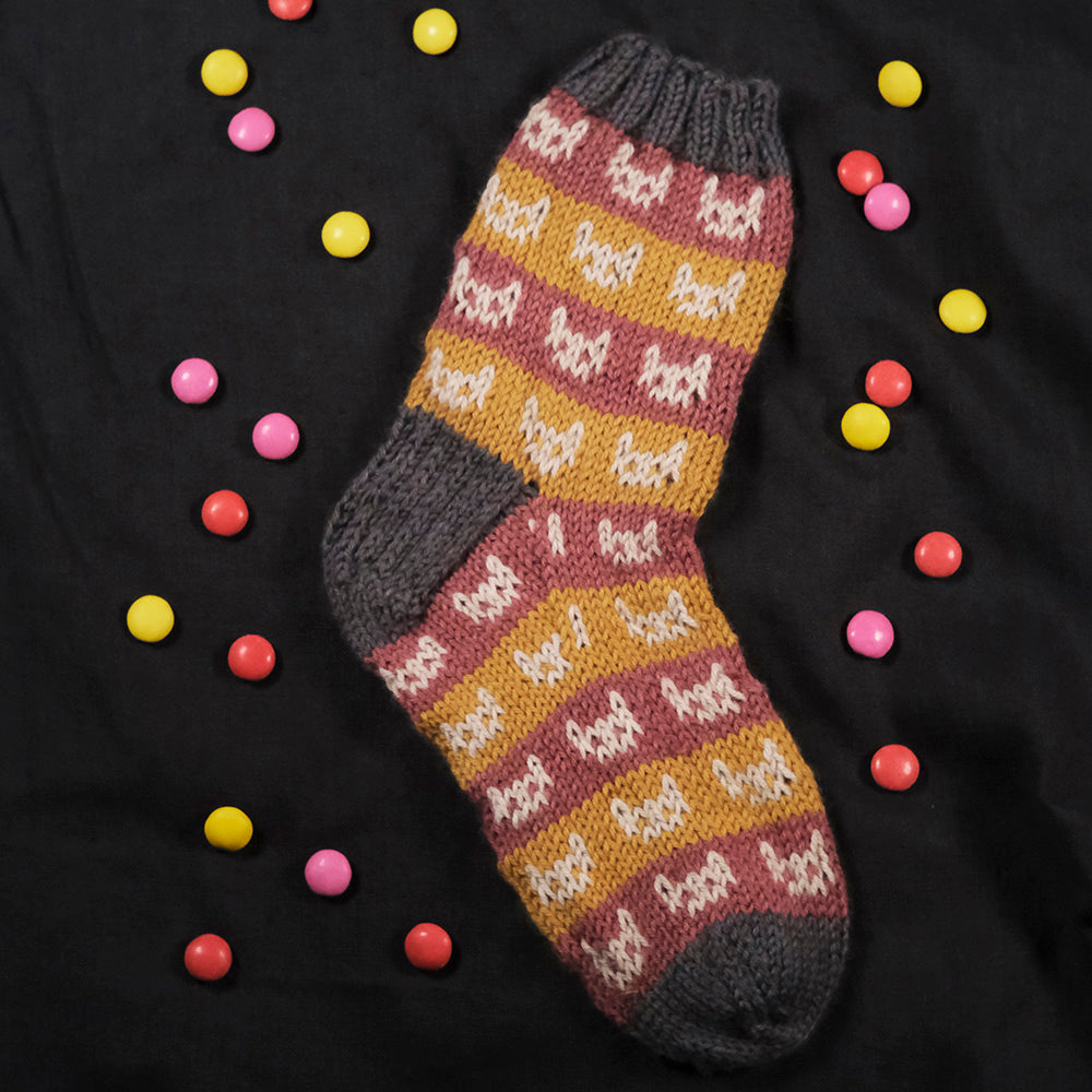 Choose Your Own Catsock Adventure has a sequel; Double Kittens! (Double Knitting really, sorry.) Keep your hind paws cosy with another eight catty patterns, in a range of sizes and with plenty of heel and toe options.