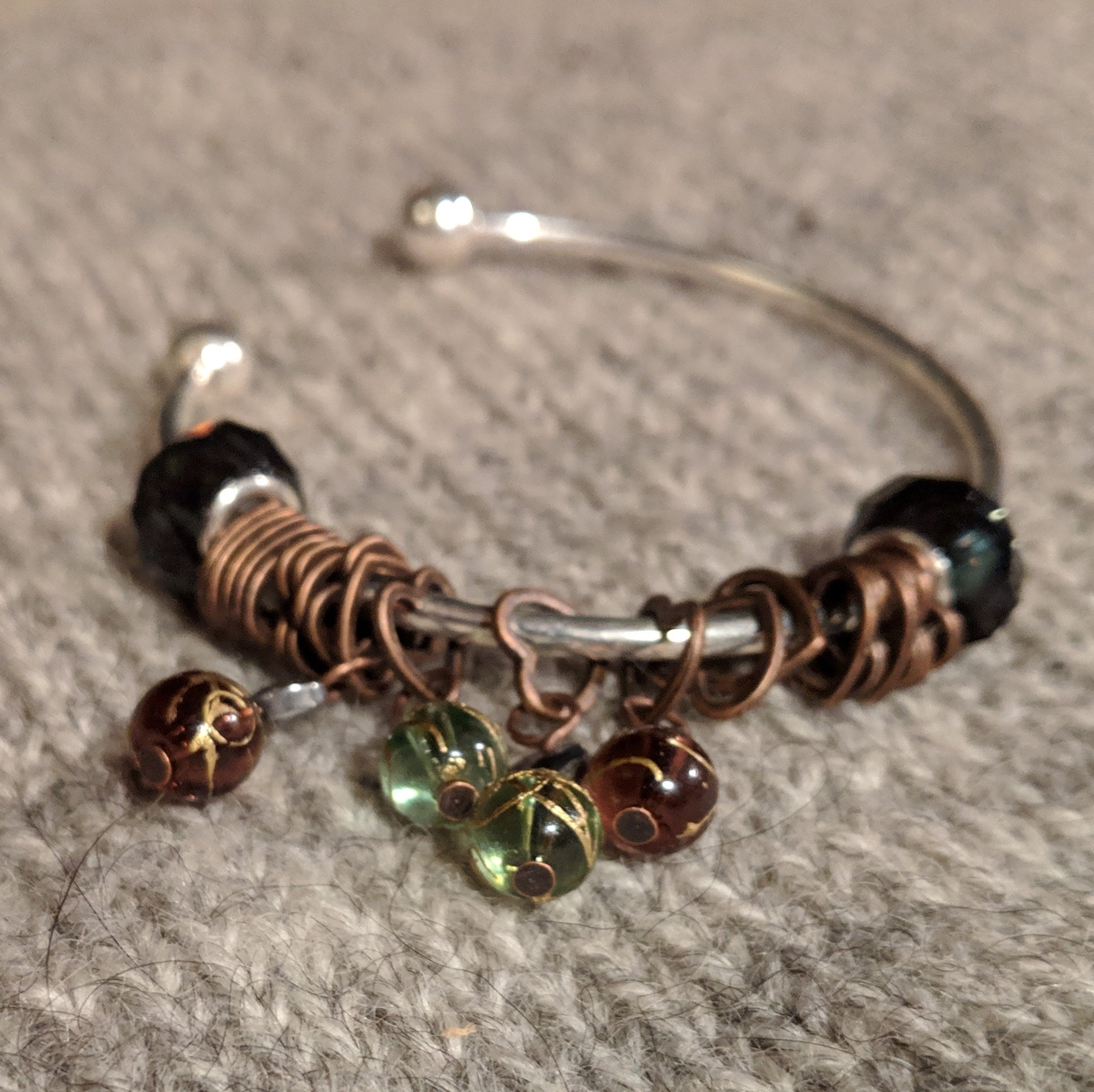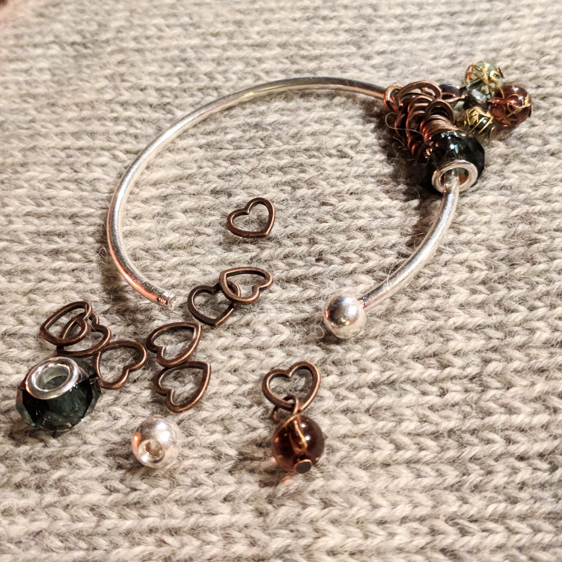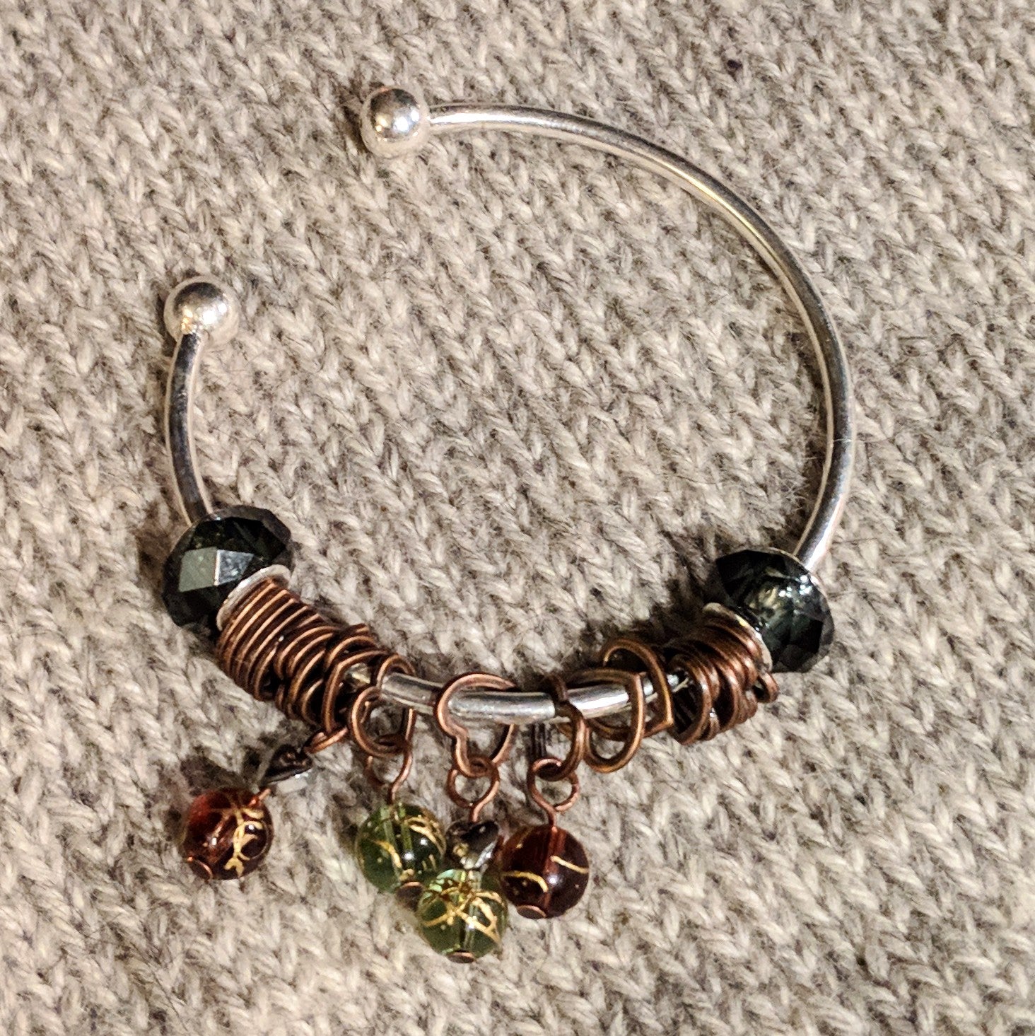 Keep your markers handy on this bangle - the ends unscrew to give you access to the stitchmarkers when you need them. Large glass beads at each end add a bit of extra bling as well as securing any larger stitchmarkers you might add.