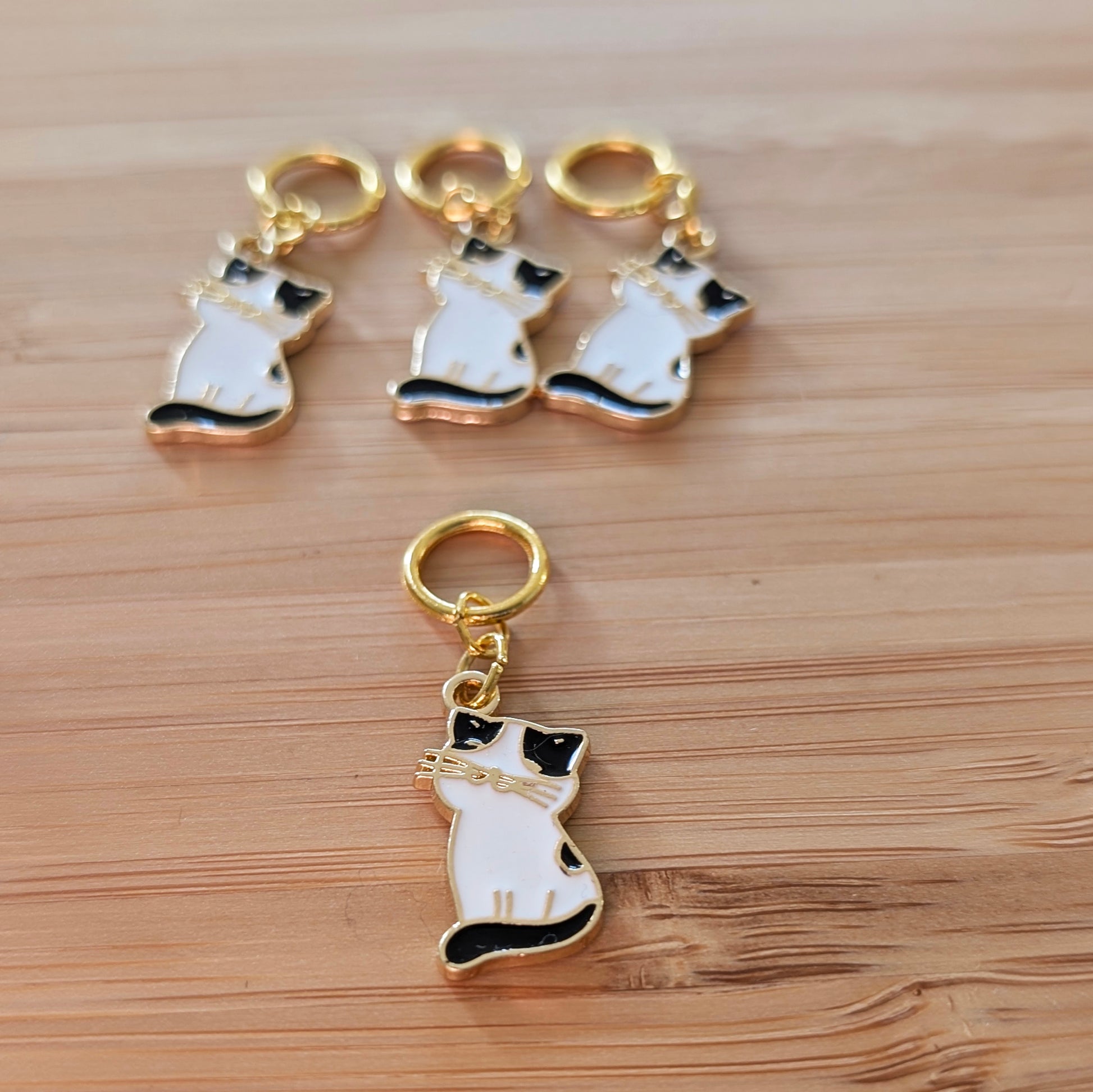 There are four stitchmarkers in a pack, and they come packaged on a catty card. If you'd like a little tin to store them in you can add it as an extra.