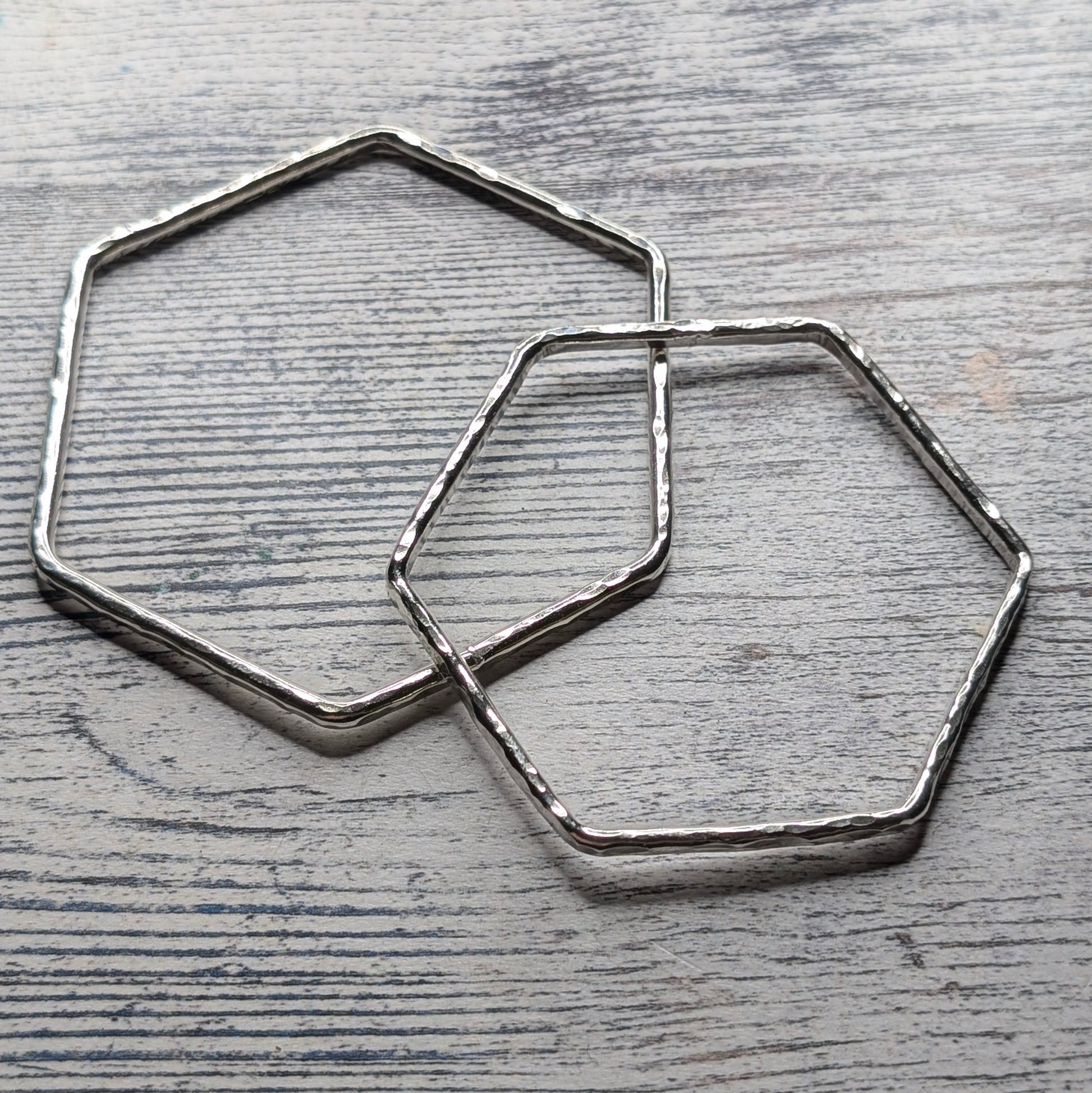 Hammered hexagon bangles, made from sterling silver. These are nicely chunky.