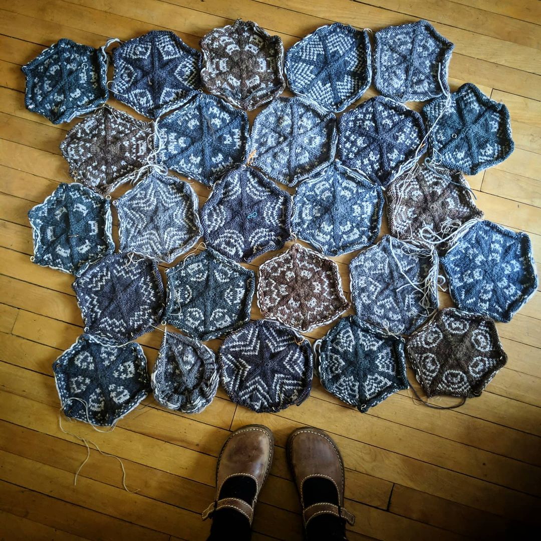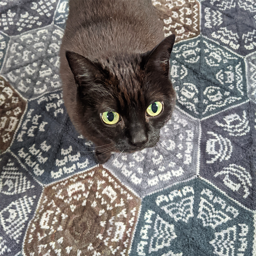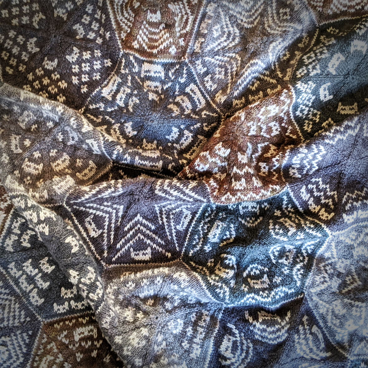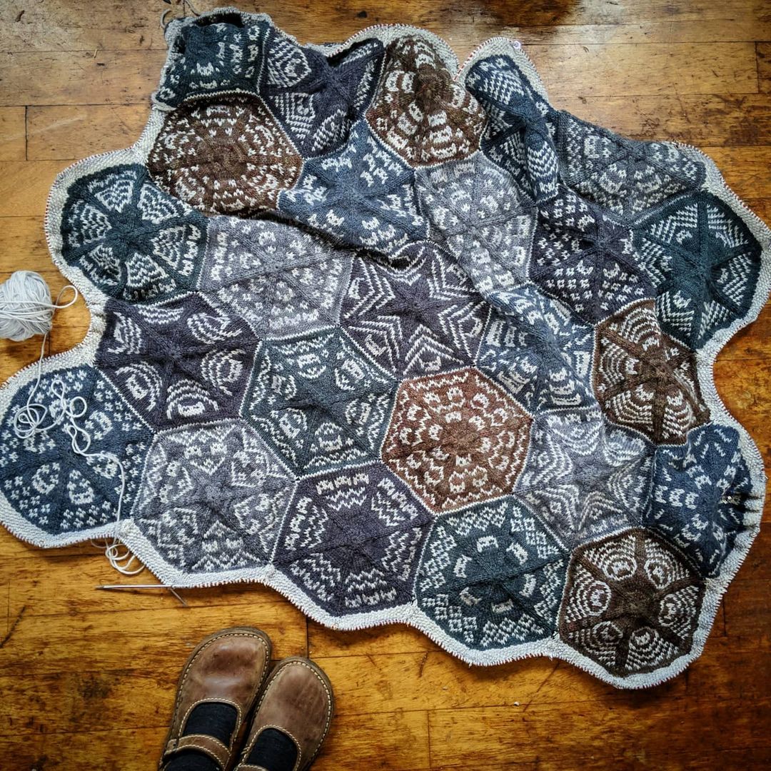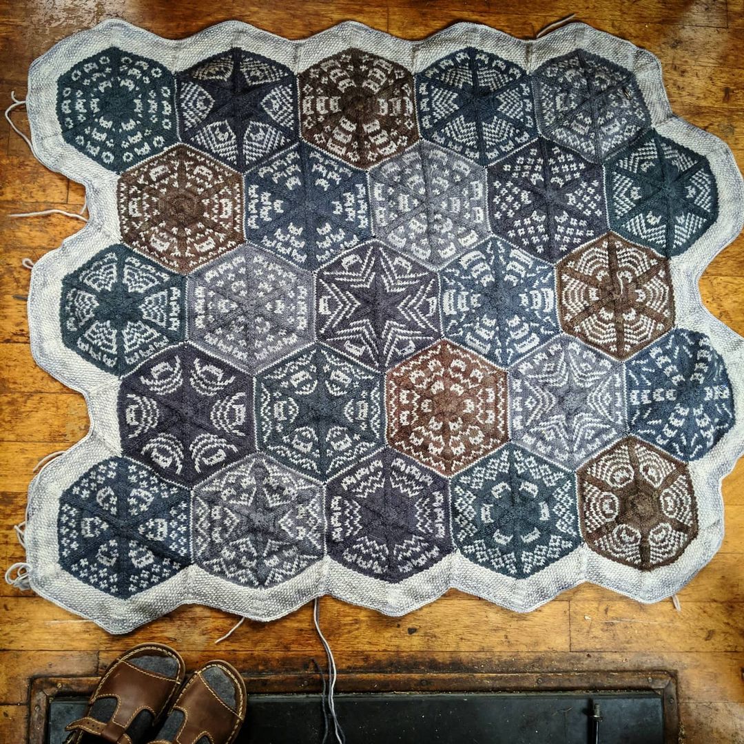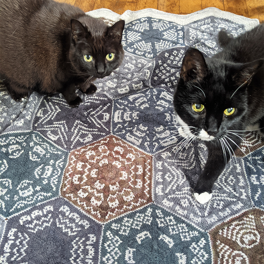 25 little catty-covered hexies combine forces to create a lovely, snuggly blanket.