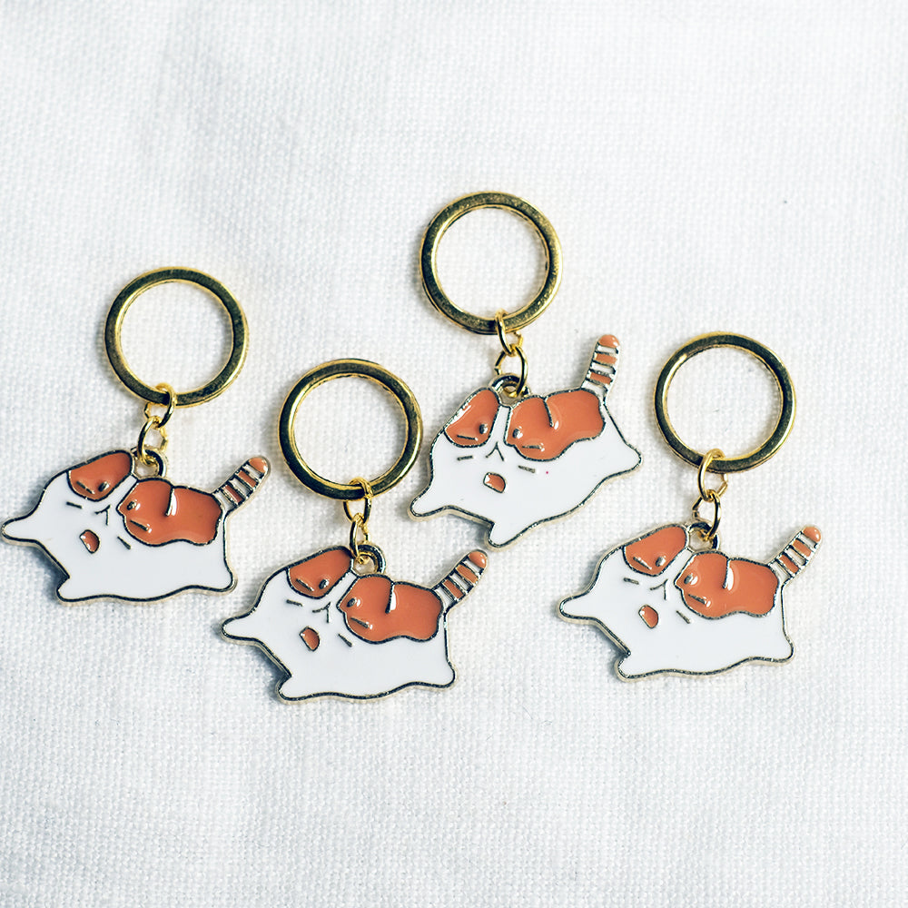 There are four stitchmarkers in a pack, and they come packaged on a catty card. If you'd like a little tin to store them in you can add it as an extra.