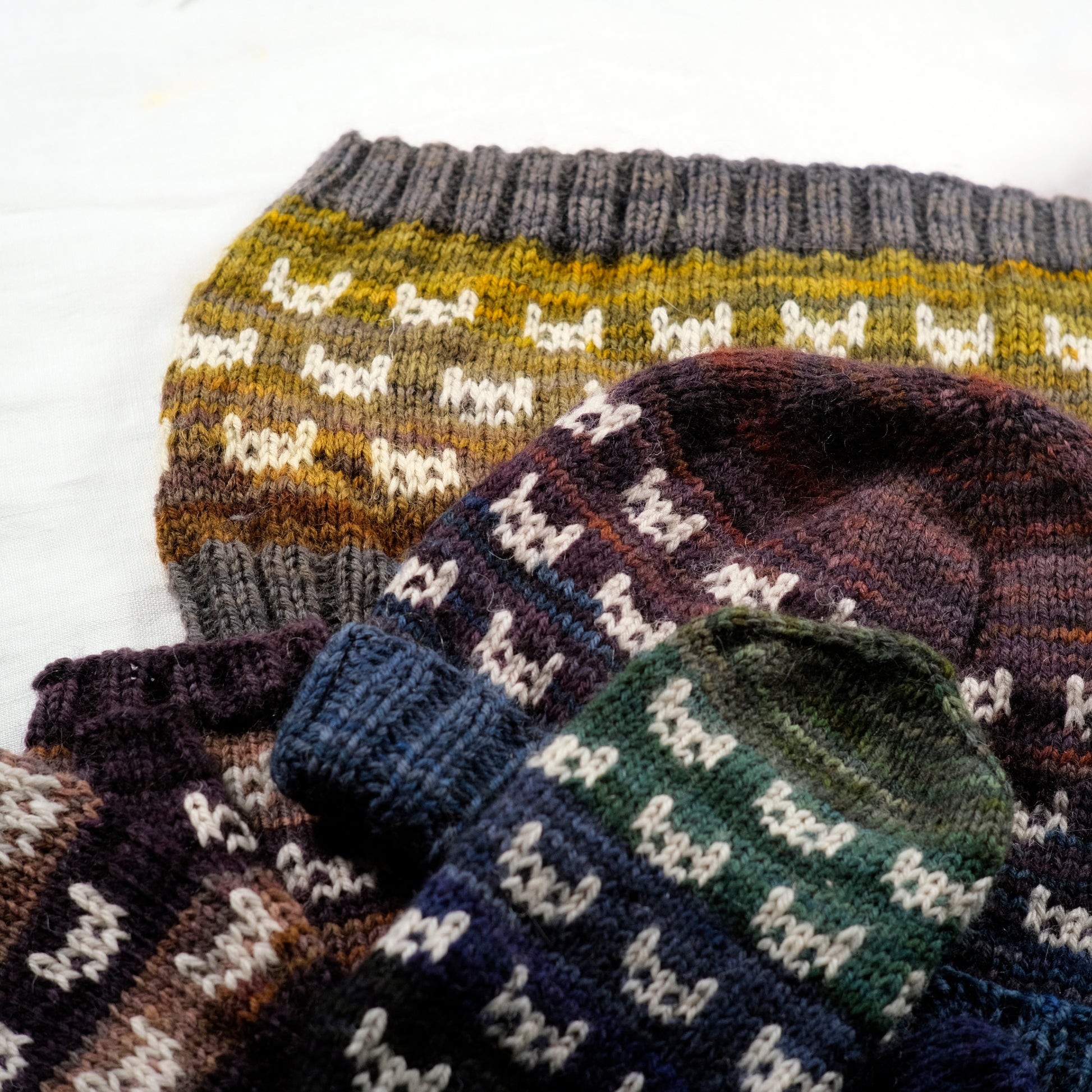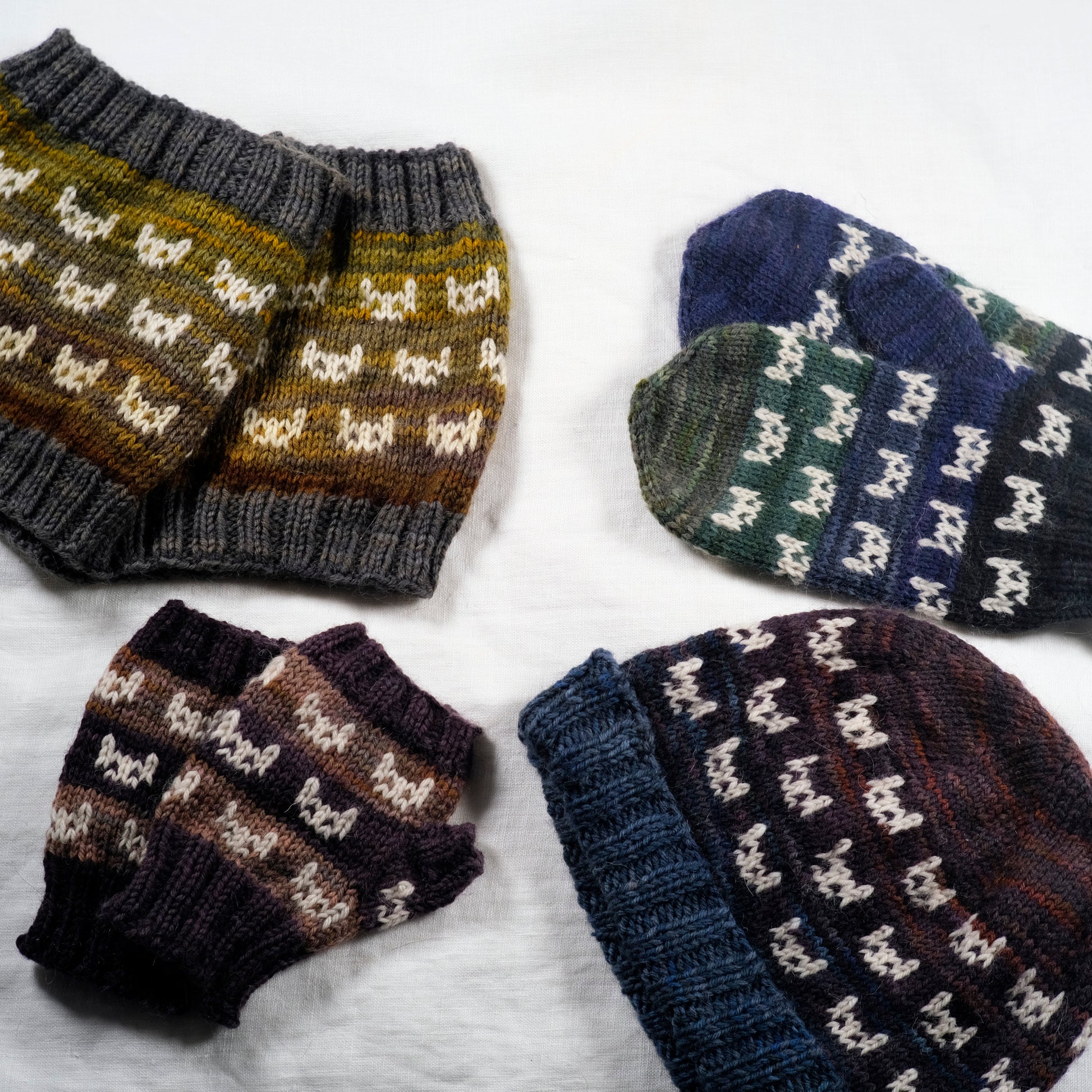 The cowl comes in three sizes, the gloves in four, and the hat in five - enough of a range that you can polka-cat almost everyone you know.