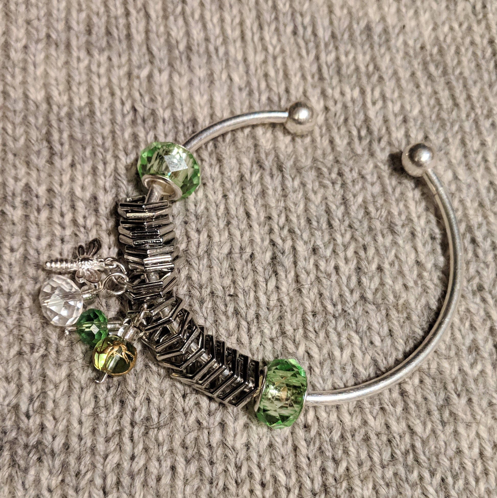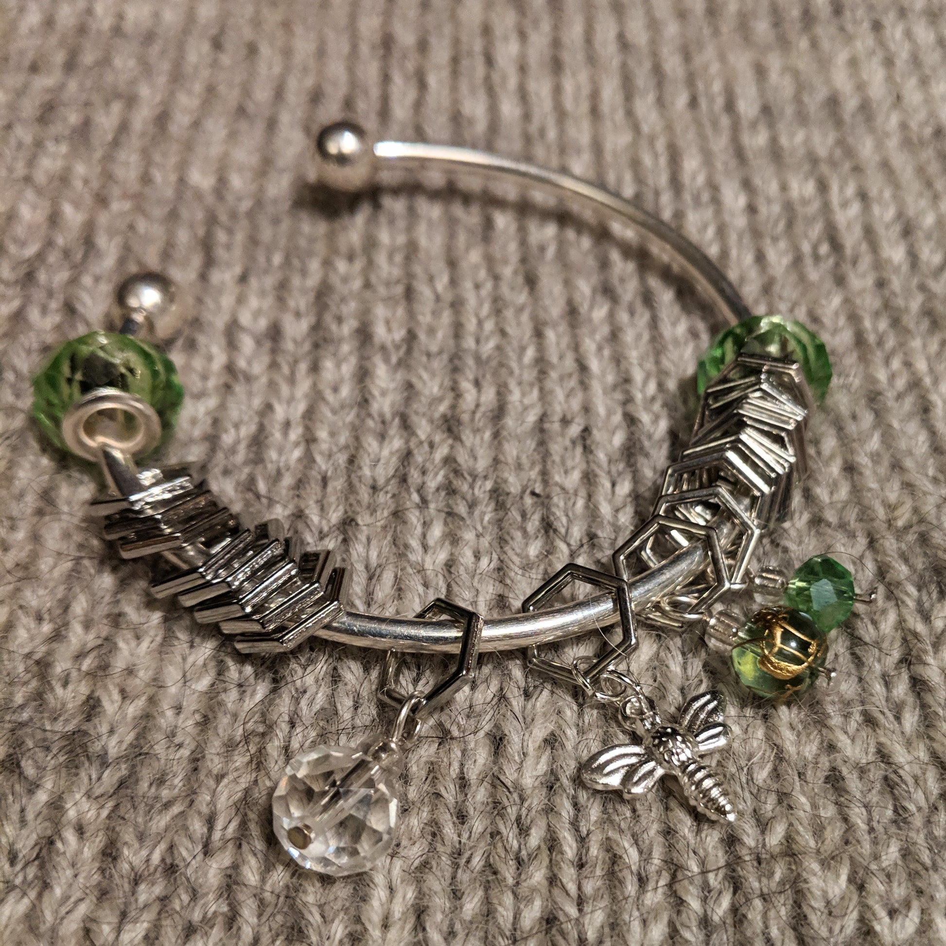 Keep your markers handy on this bangle - the ends unscrew to give you access to the stitchmarkers when you need them. Large glass beads at each end add a bit of extra bling as well as securing any larger stitchmarkers you might add.